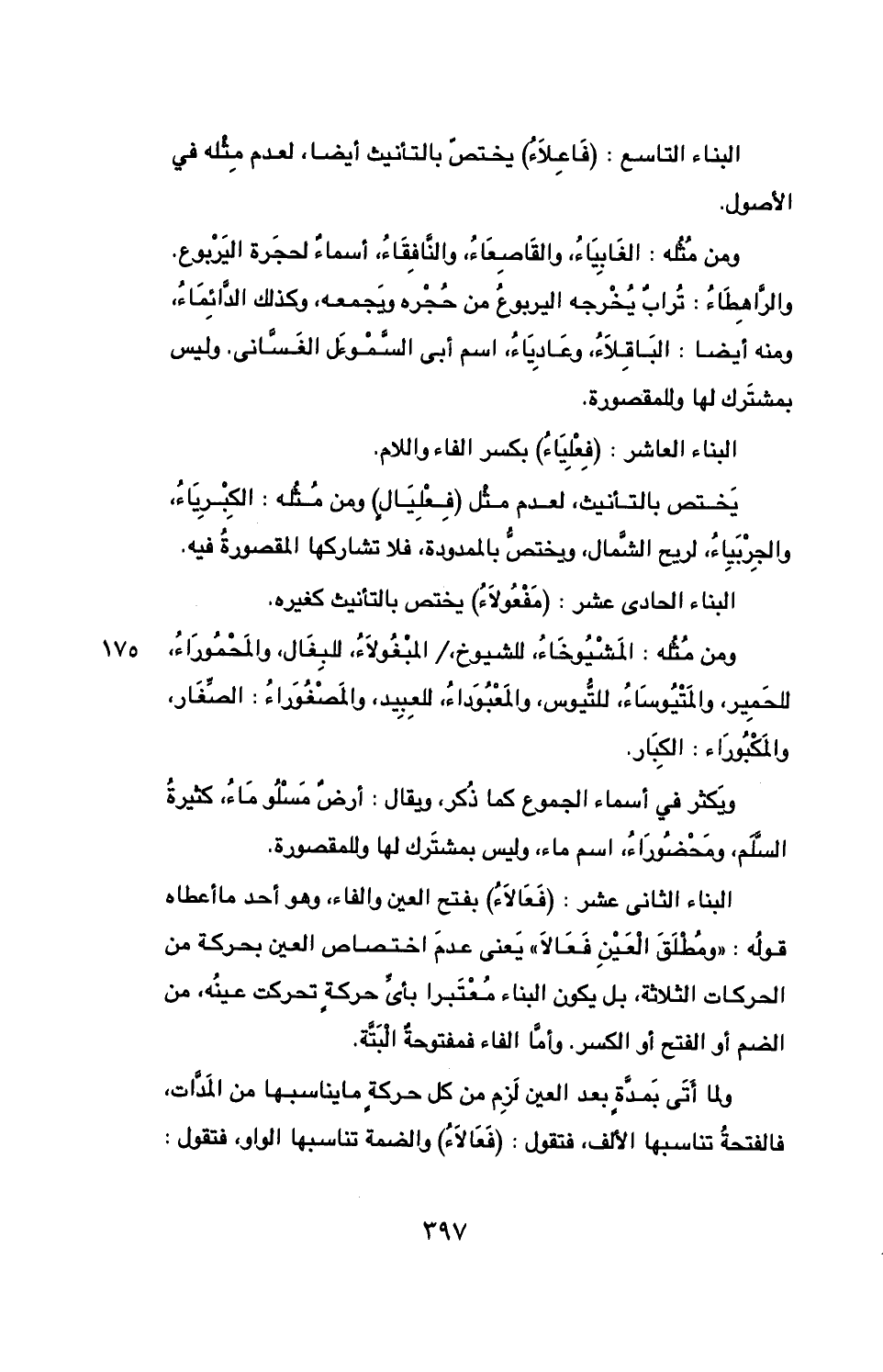 البناء العاشر: (فعلياء) بكسر الفاء واللام.