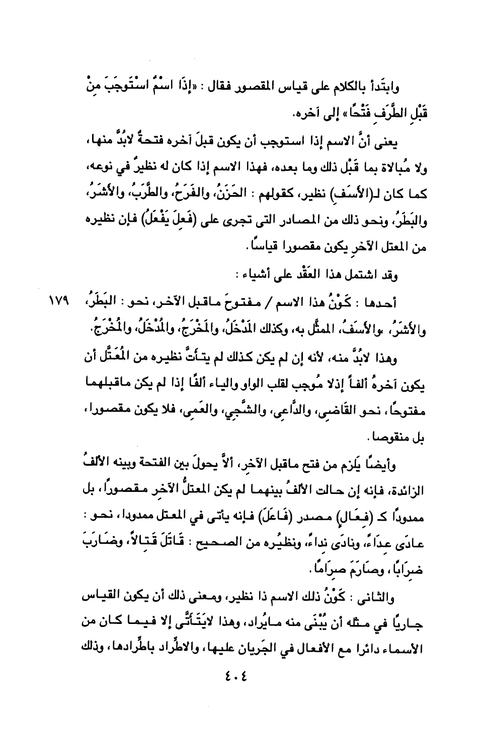 وابتدأ بالكلام على قياس المقصور فقال: "إذا اسم استوجب من قبل الطرف فتحًا" إلى آخره.