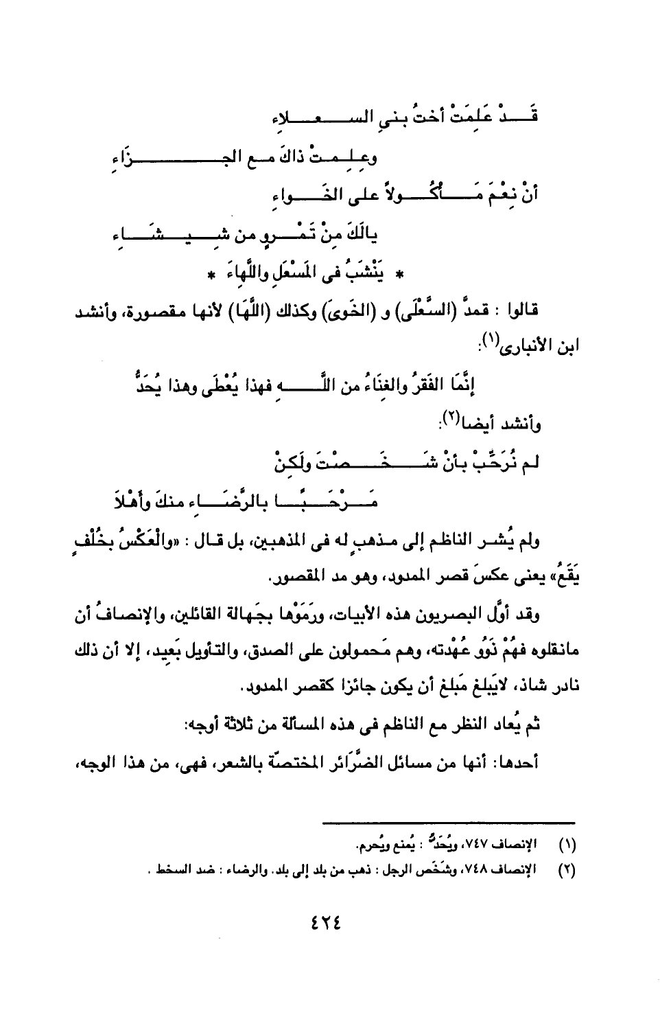 أحدها: أنها من مسائل الضرائر المختصة بالشعر، فهي، من هذا الوجه،