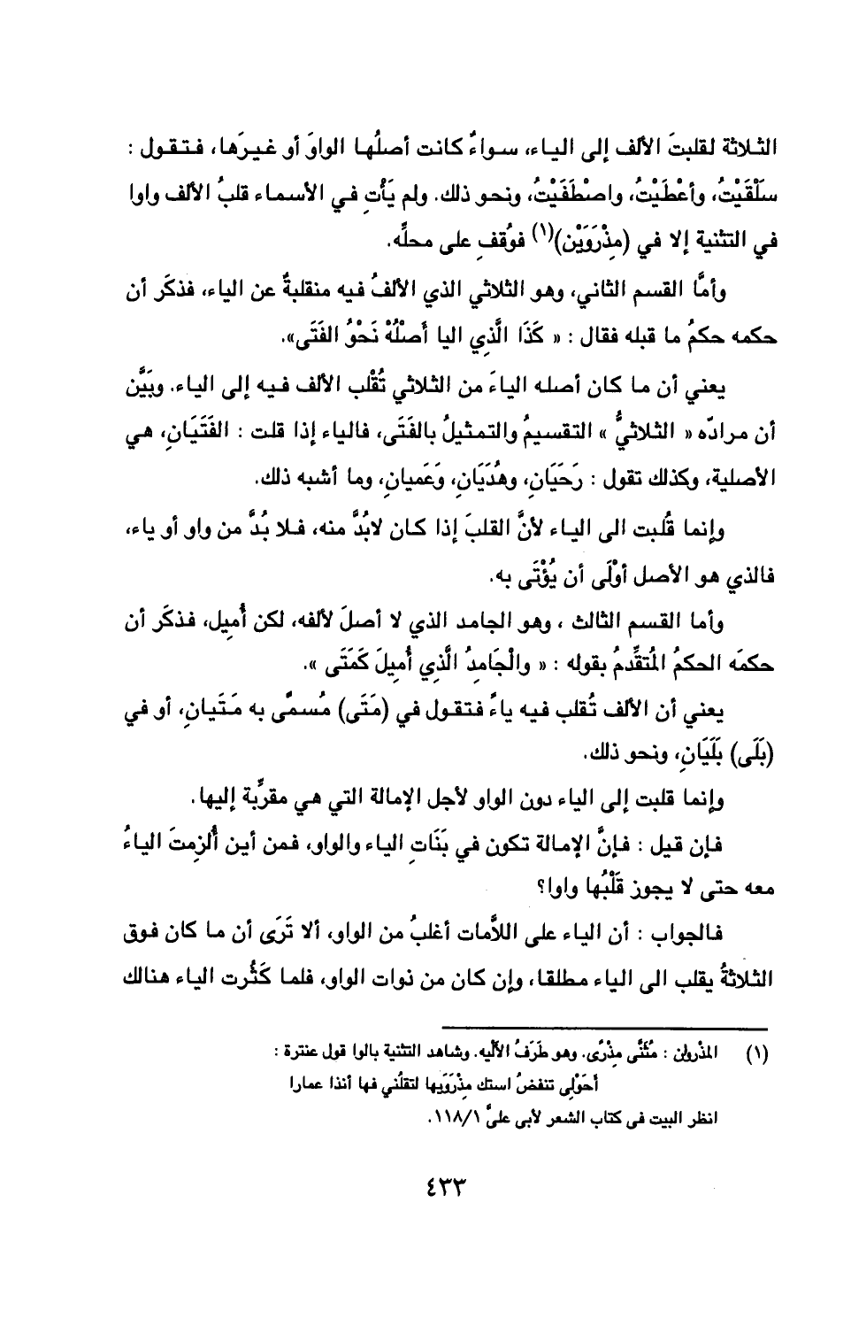 يعني أن الألف تقلب فيه ياء فتقول في (متى) مسمى به متيان، أو في (بلى) بليان، ونحو ذلك.
