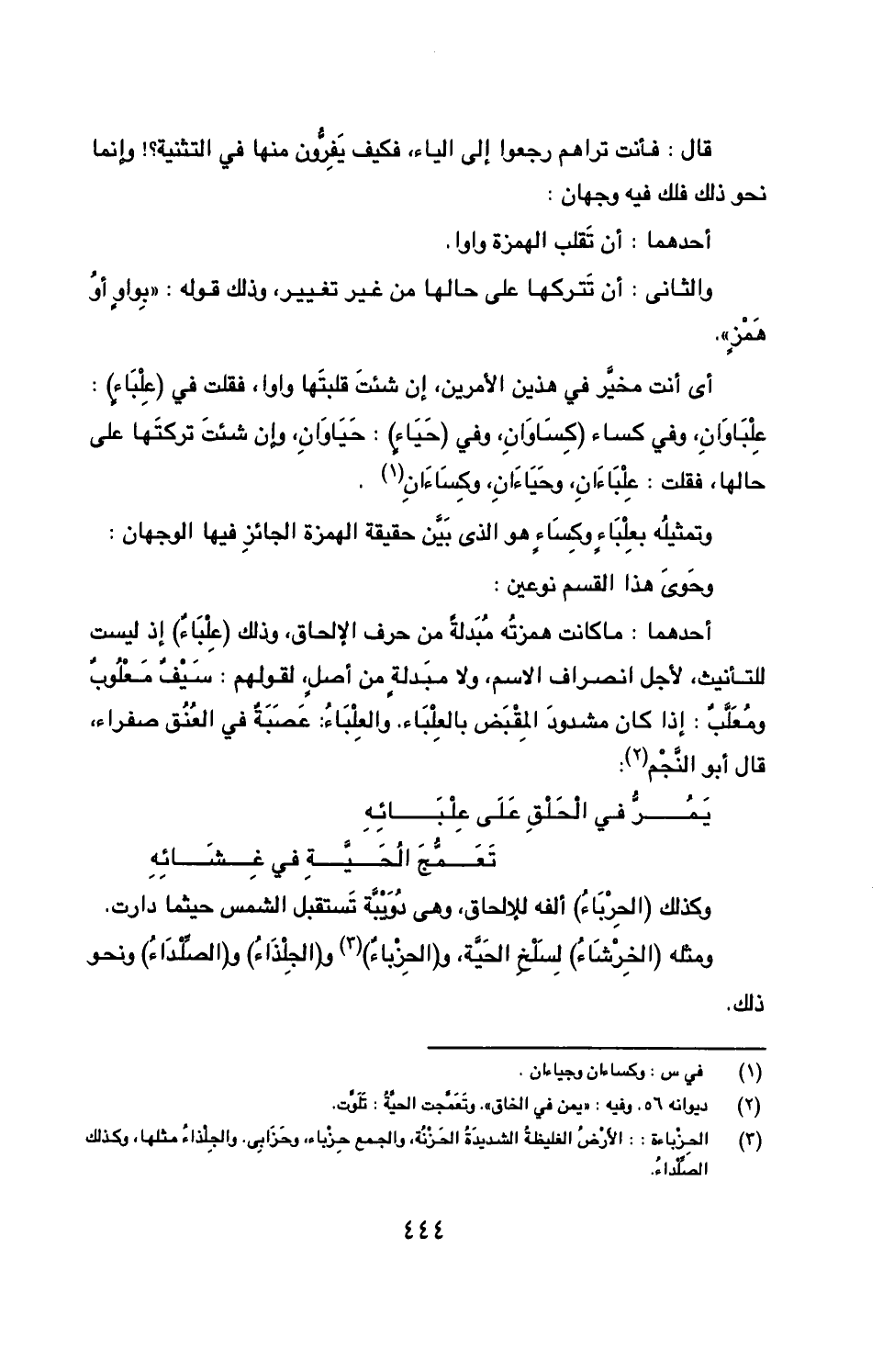 وتمثيله بعلباء وكساء هو الذي بين حقيقة الهمزة الجائز فيها الوجهان: