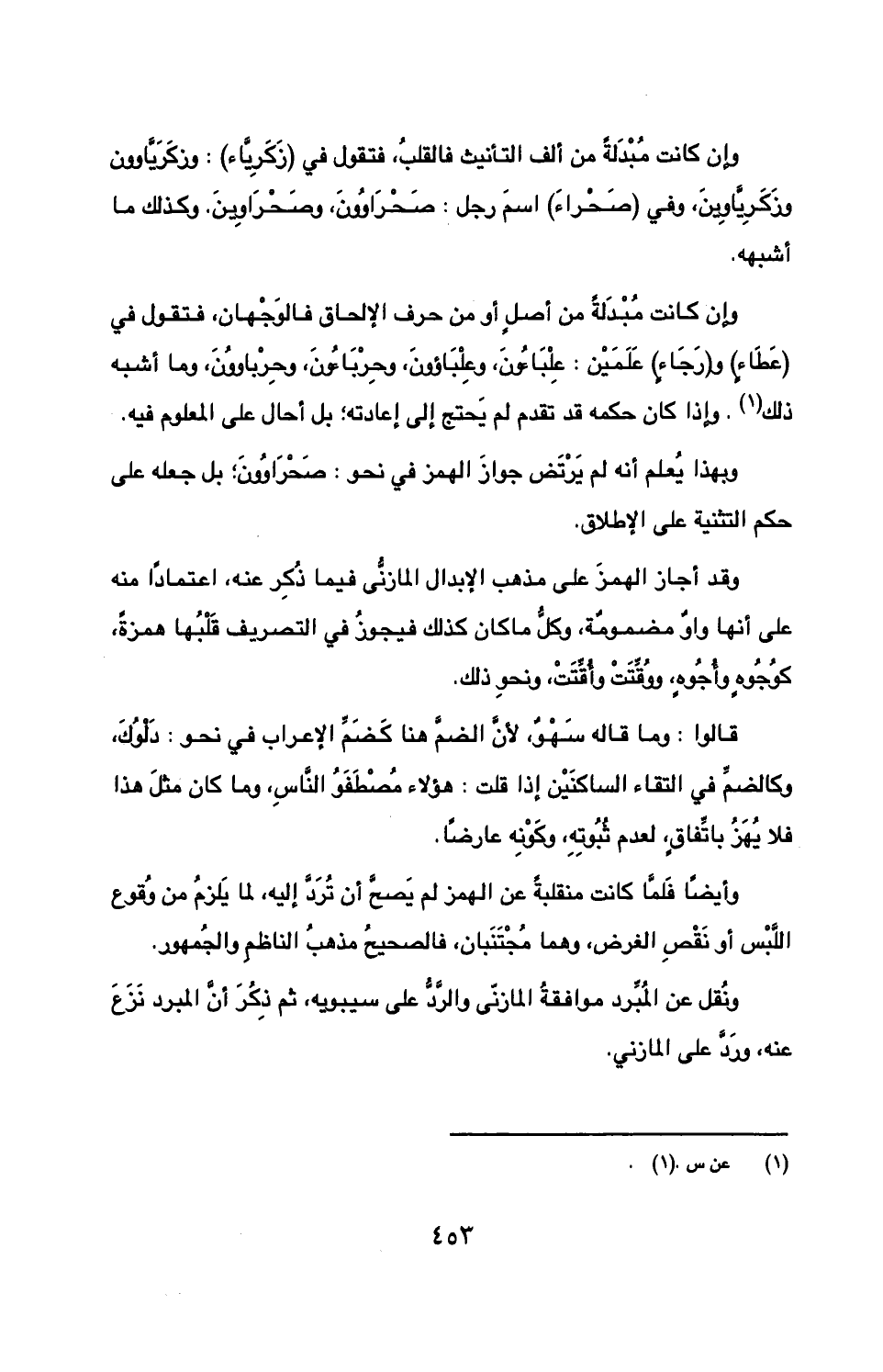 ونقل عن المبرد موافقة المازني والرد على سيبويه, ثم ذكر أن المبرد نزع عنه, ورد على المازني.