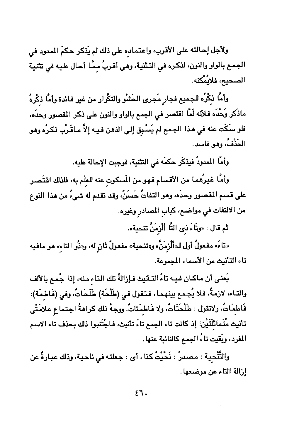 ولأجل إحالته على الأقرب, واعتماده على ذلك لم يذكر حكم الممدود في الجمع بالواو والنون, لذكره في التثنية, وهى أقرب مما أحال عليه في تثنية الصحيح, فلا يمكنه.