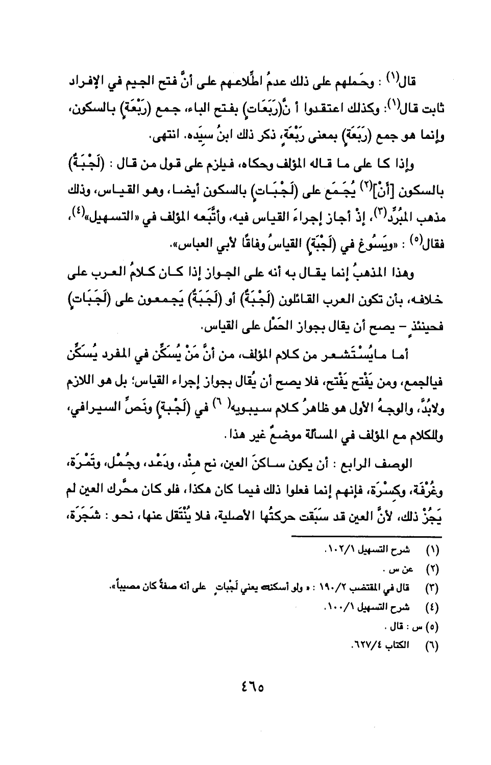 أما ما يستشعر من كلام المؤلف, من أن من يسكن في المفرد يسكن في الجمع, ومن يفتح يفتح, فلا يصح أن يقال بجواز إجراء القياس؛ بل هو اللازم ولابد, والوجه الأول هو ظاهر كلام سيبويه في (لجبة) ونص السيرافي, وللكلام مع المؤلف في المسألة موضع غير هذا.