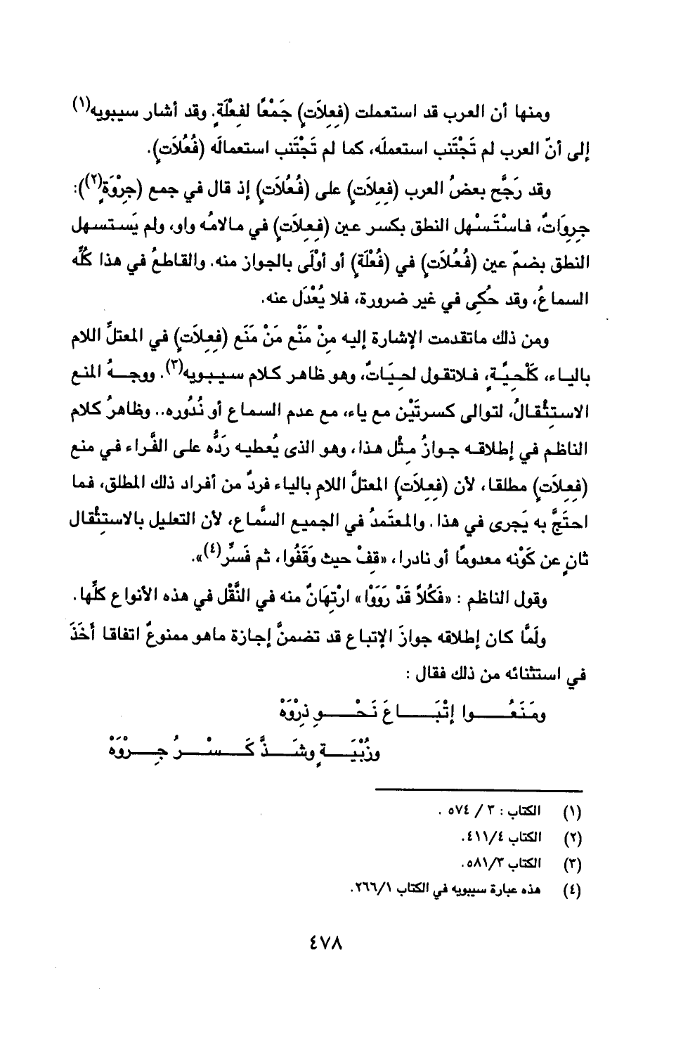 ومنها أن العرب قد استعملت (فعلات) جمعًا لفعلة, وقد أشار سيبويه إلى أن العرب لم تجتنب استعمله, كما لم تجتنب استعماله (فعلات).