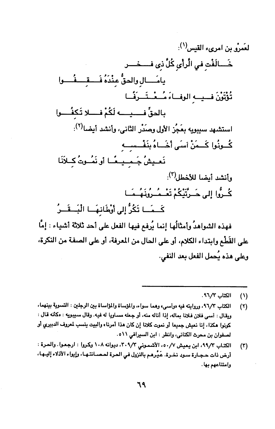 استشهد سيبويه بعجز الأول وصدر الثاني، وأنشد أيضا: