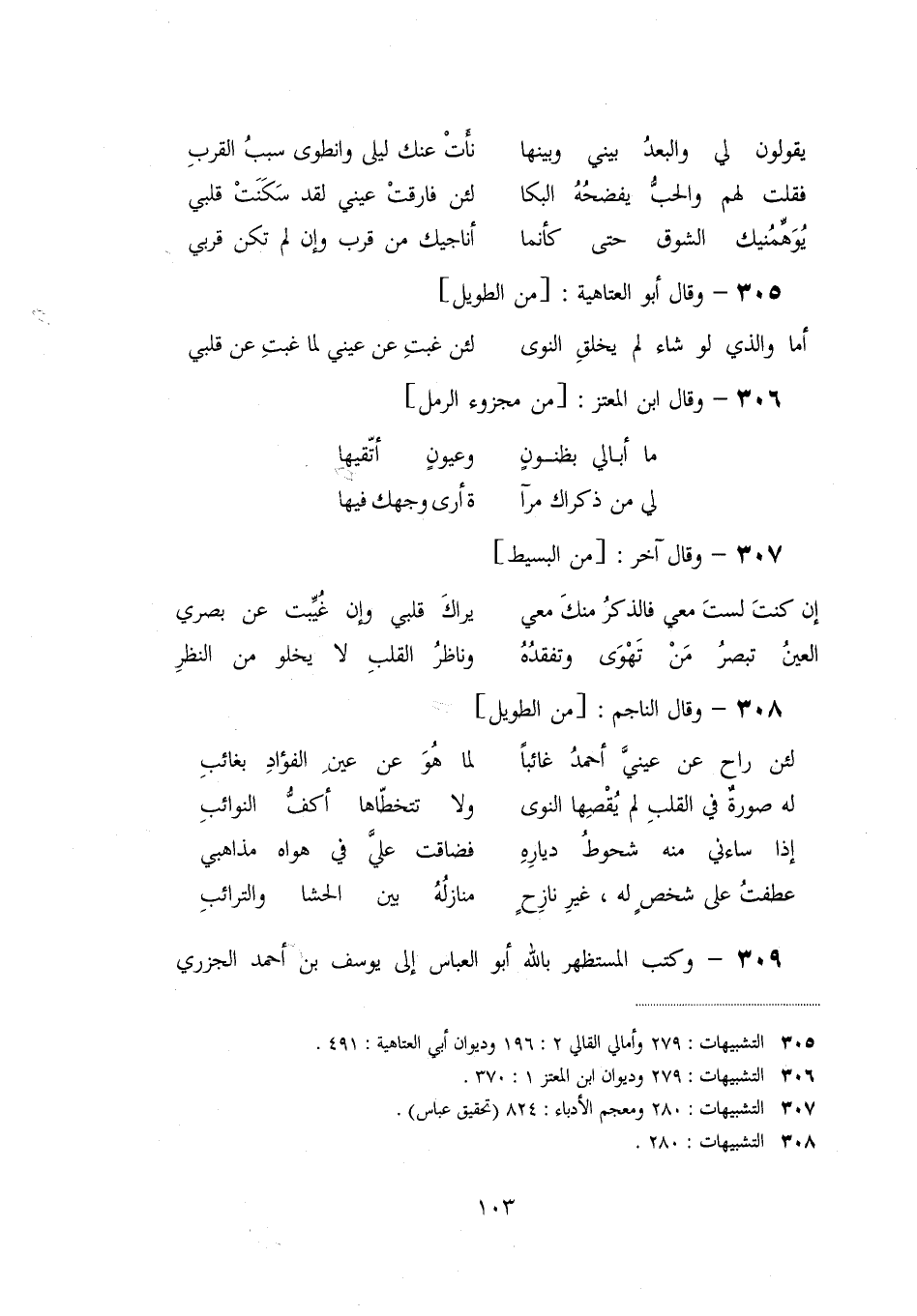[305] التشبيهات: 279 وأمالي القالي 2: 196 وديوان أبي العتاهية: 491.