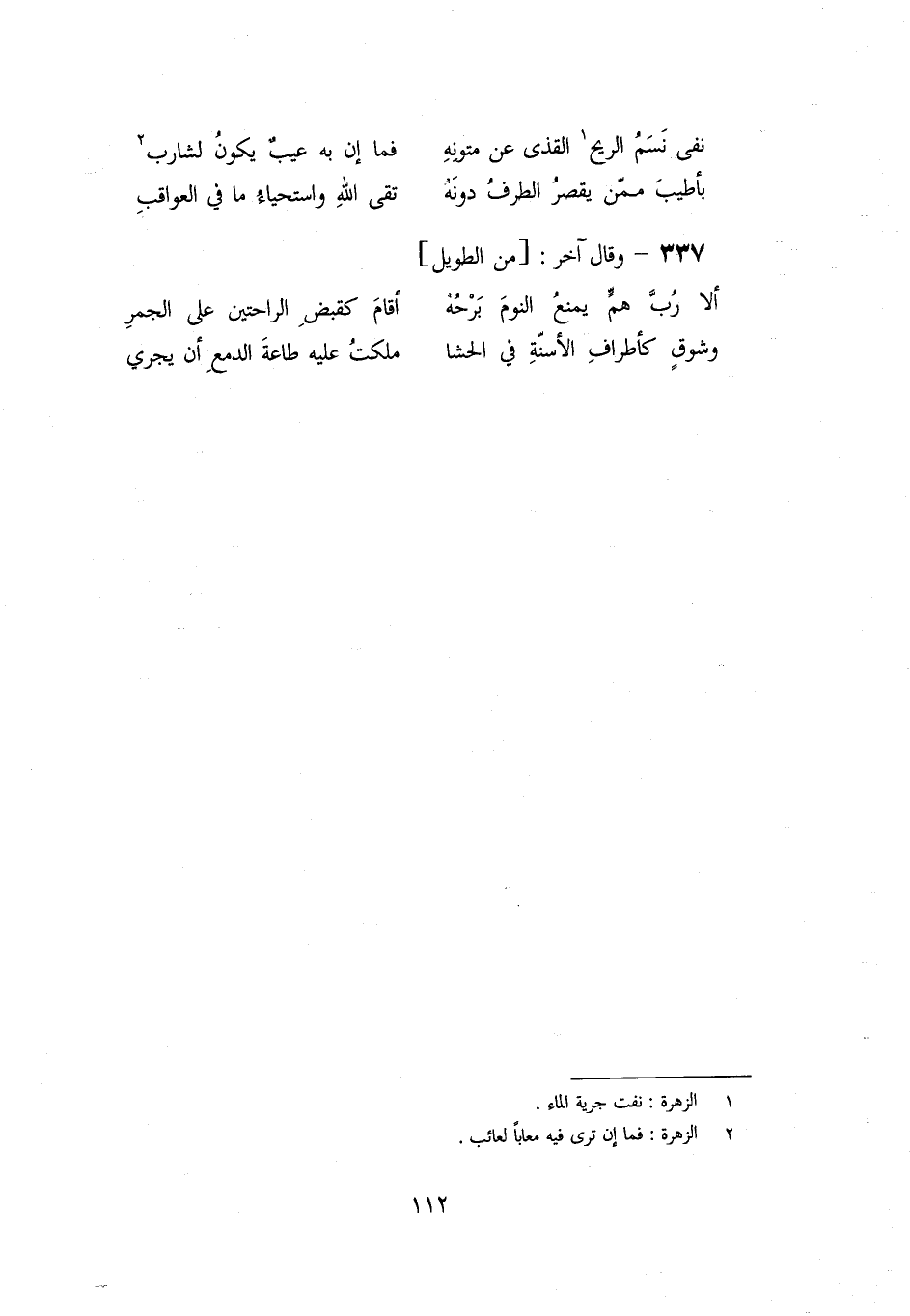 نفى نسم الريح «1» القذى عن متونه ... فما إن به عيب يكون لشارب «2»