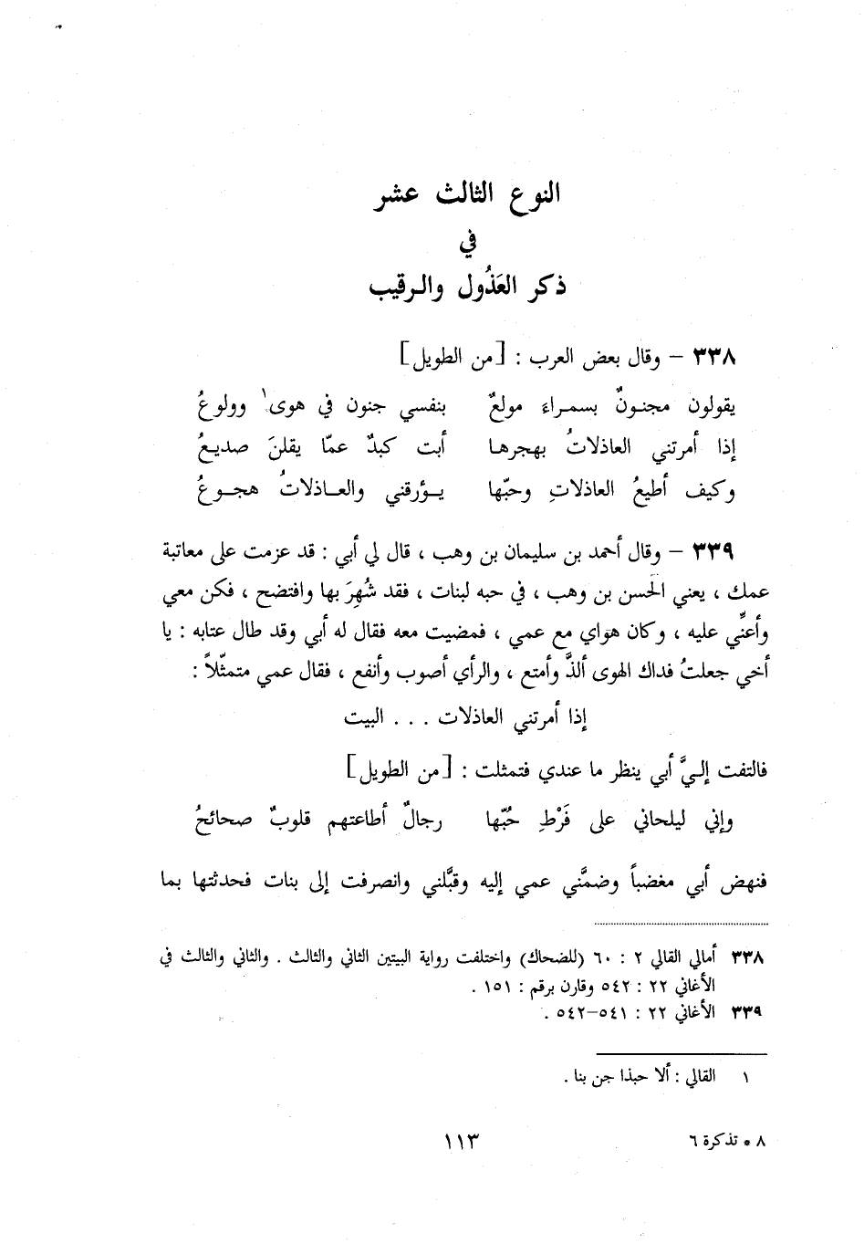 [339]- وقال أحمد بن سليمان بن وهب، قال لي أبي: قد عزمت على معاتبة عمك، يعني الحسن بن وهب، في حبه لبنات، فقد شهر بها وافتضح، فكن معي وأعنّي عليه، وكان هواي مع عمي، فمضيت معه فقال له أبي وقد طال عتابه: يا أخي جعلت فداك الهوى ألذّ وأمتع، والرأي أصوب وأنفع، فقال عمي متمثّلا: