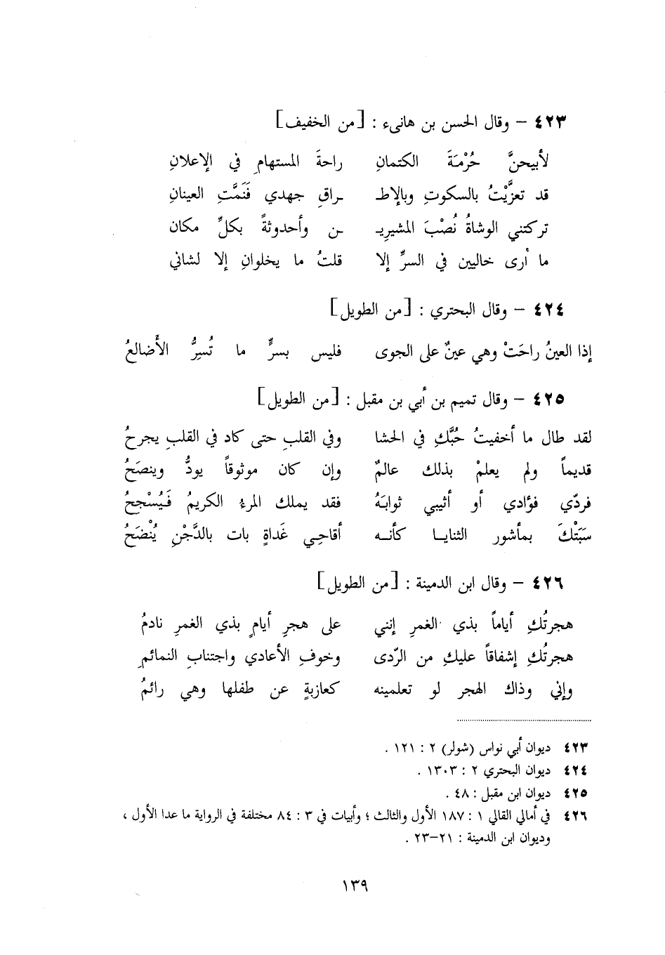 [423]- وقال الحسن بن هانىء: [من الخفيف]