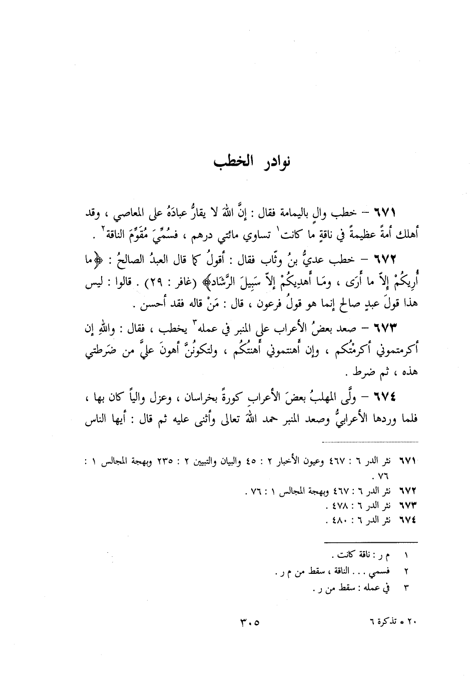 [671] نثر الدر 6: 467 وعيون الأخبار 2: 45 والبيان والتبيين 2: 235 وبهجة المجالس 1: