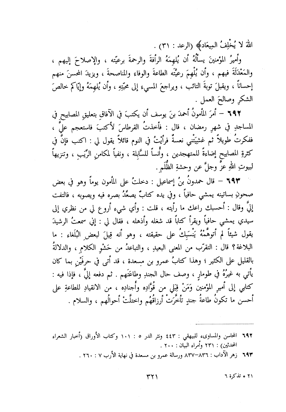 [693] زهر الآداب: 836- 837 ورسالة عمرو بن مسعدة في نهاية الأرب 7: 260.