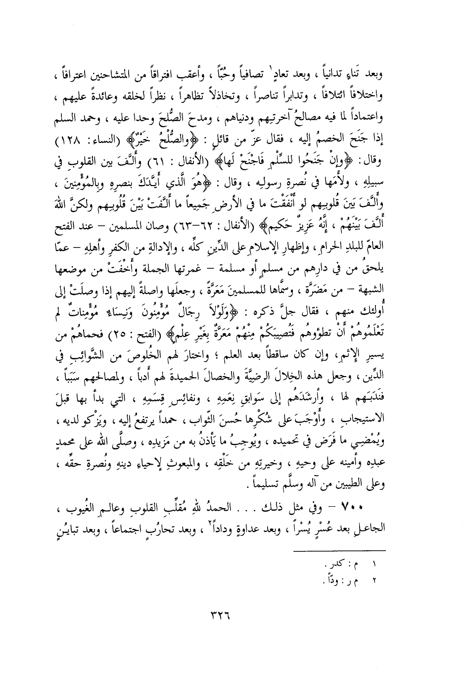 700- وفي مثل ذلك ... الحمد لله مقلّب القلوب وعالم الغيوب، الجاعل بعد عسر يسرا، وبعد عداوة ودادا «2» ، وبعد تحارب اجتماعا، وبعد تباين