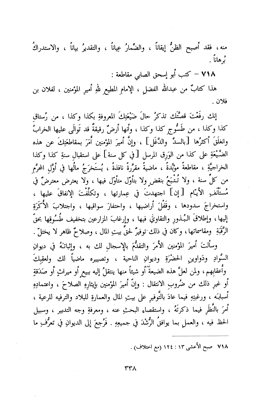 [718]- كتب أبو إسحق الصابي مقاطعة: