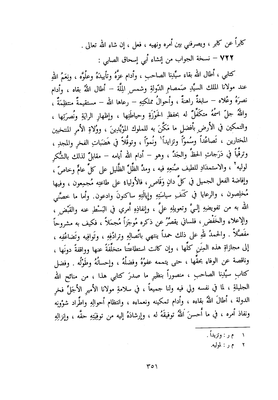 722- نسخة الجواب من إنشاء أبي إسحاق الصابي: