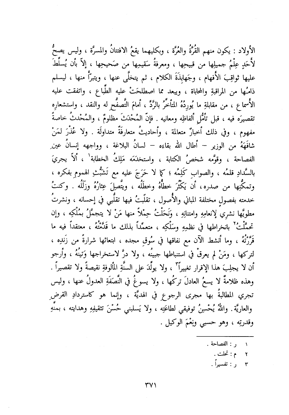 وهذه ظلامة لا يسع العادل تركها، ولا يسوغ في النّصفة العدول عنها، وليس تجري المطالبة بها مجرى الرجوع في الهديّة، وإنما هو كاسترداد القرض والعاريّة. والله يحسن توفيقي لطاعته، ولا يسلبني حسن تثقيفه وهدايته، بمنّه وقدرته، وهو حسبي ونعم الوكيل.