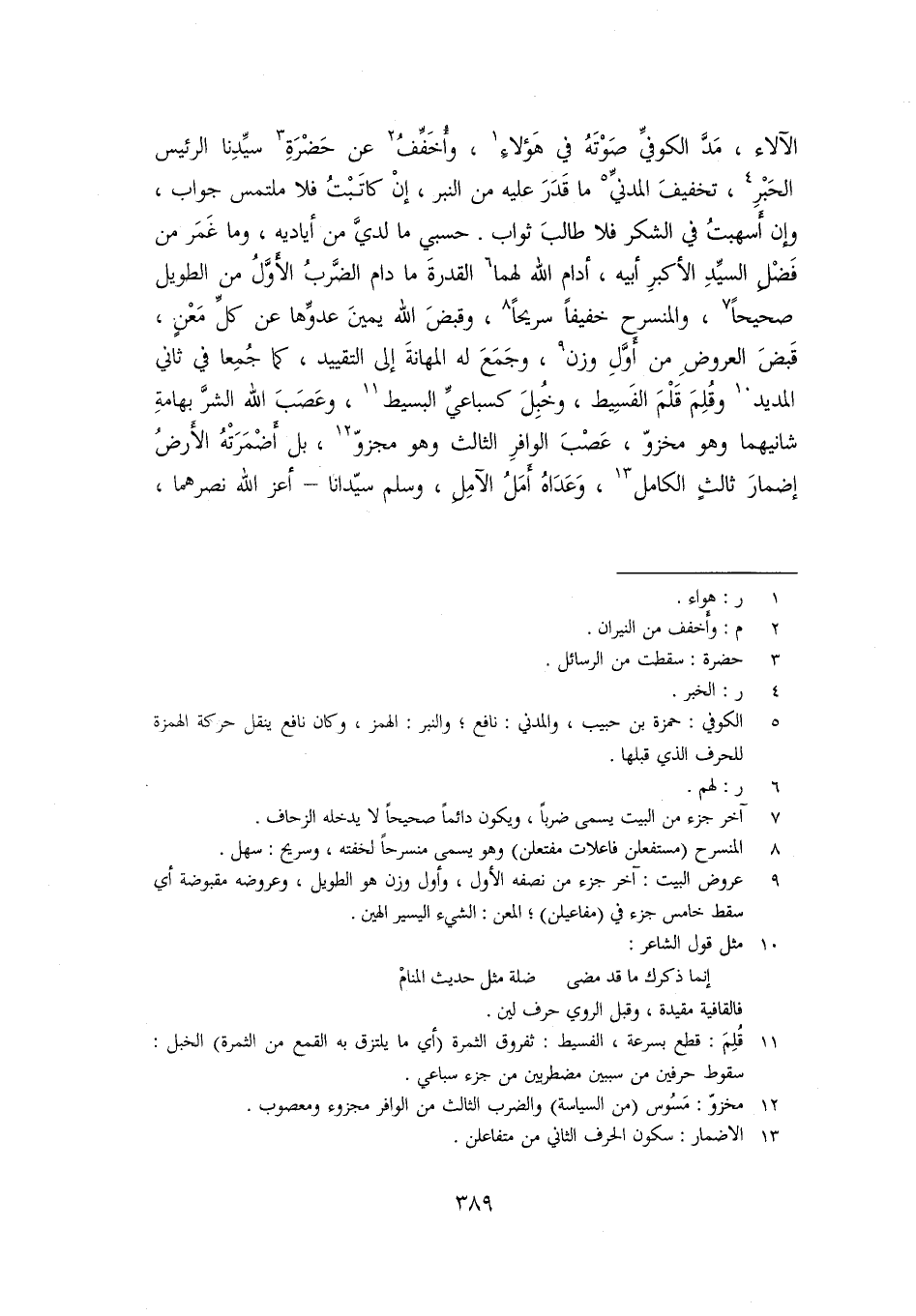 الآلاء، مدّ الكوفيّ صوته في هؤلاء «1» ، وأخفّف «2» عن حضرة «3» سيّدنا الرئيس الحبر «4» ، تخفيف المدنيّ «5» ما قدر عليه من النبر، إن كاتبت فلا ملتمس جواب، وإن أسهبت في الشكر فلا طالب ثواب. حسبي ما لديّ من أياديه، وما غمر من فضل السيّد الأكبر أبيه، أدام الله لهما «6» القدرة ما دام الضّرب الأوّل من الطويل صحيحا «7» ، والمنسرح خفيفا سريحا «8» ، وقبض الله يمين عدوّها عن كلّ معن، قبض العروض من أوّل وزن «9» ، وجمع له المهانة إلى التقييد، كما جمعا في ثاني المديد «10» وقلم قلم الفسيط، وخبل كسباعيّ البسيط «11» ، وعصب الله الشرّ بهامة شانيهما وهو مخزوّ، عصب الوافر الثالث وهو مجزوّ «12» ، بل أضمرته الأرض إضمار ثالث الكامل «13» ، وعداه أمل الآمل، وسلم سيّدانا- أعز الله نصرهما،