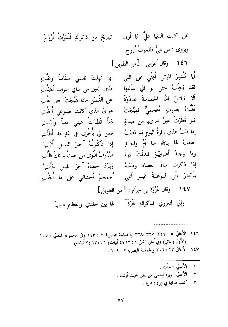[147] الأغاني 23: 306 والحماسة البصرية 2: 209.