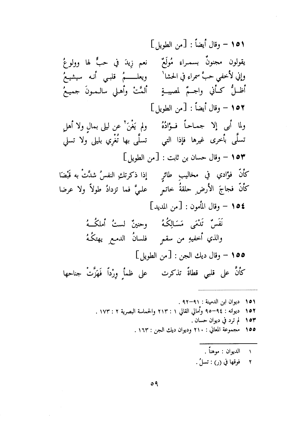 [155] مجموعة المعاني: 210 وديوان ديك الجن: 163.