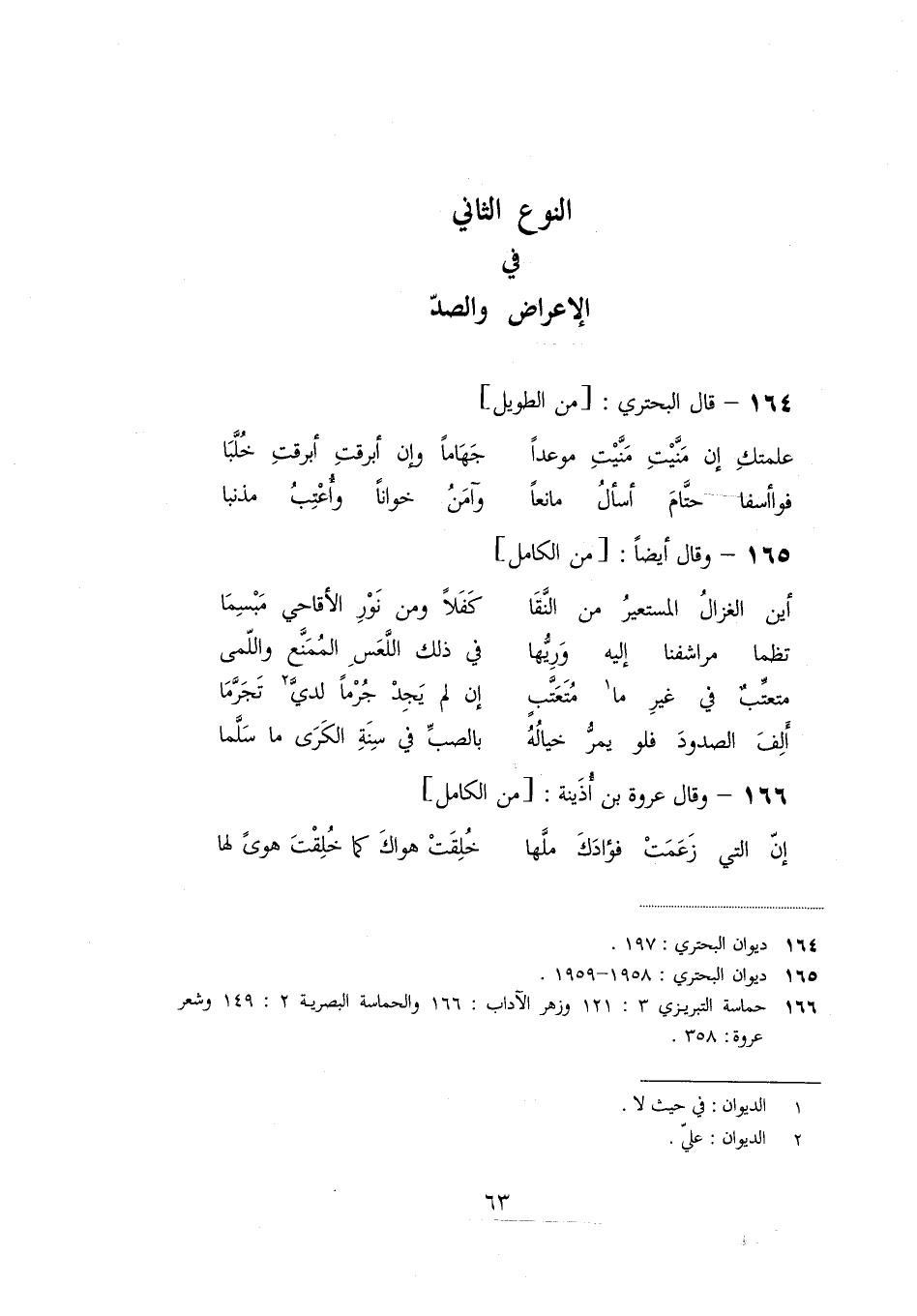 [166] حماسة التبريزي 3: 121 وزهر الآداب: 166 والحماسة البصرية 2: 149 وشعر عروة: 358.