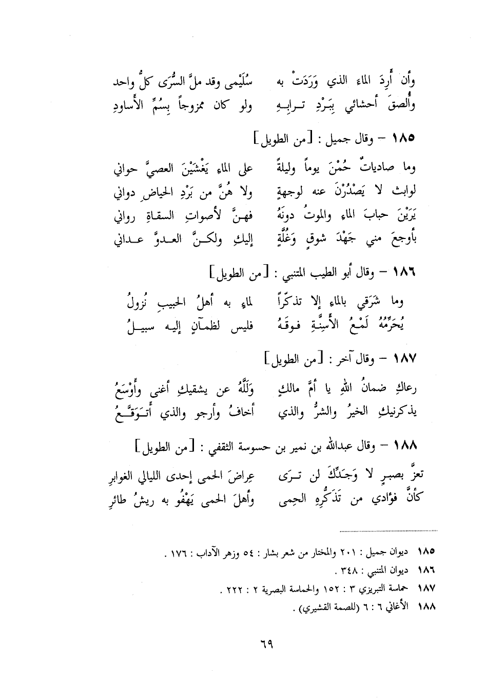 [185] ديوان جميل: 201 والمختار من شعر بشار: 54 وزهر الآداب: 176.