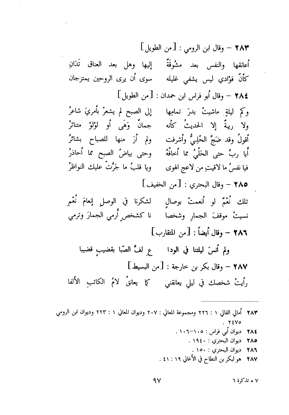 [283] أمالي القالي 1: 226 ومجموعة المعاني: 207 وديوان المعاني 1: 223 وديوان ابن الرومي 2475.
