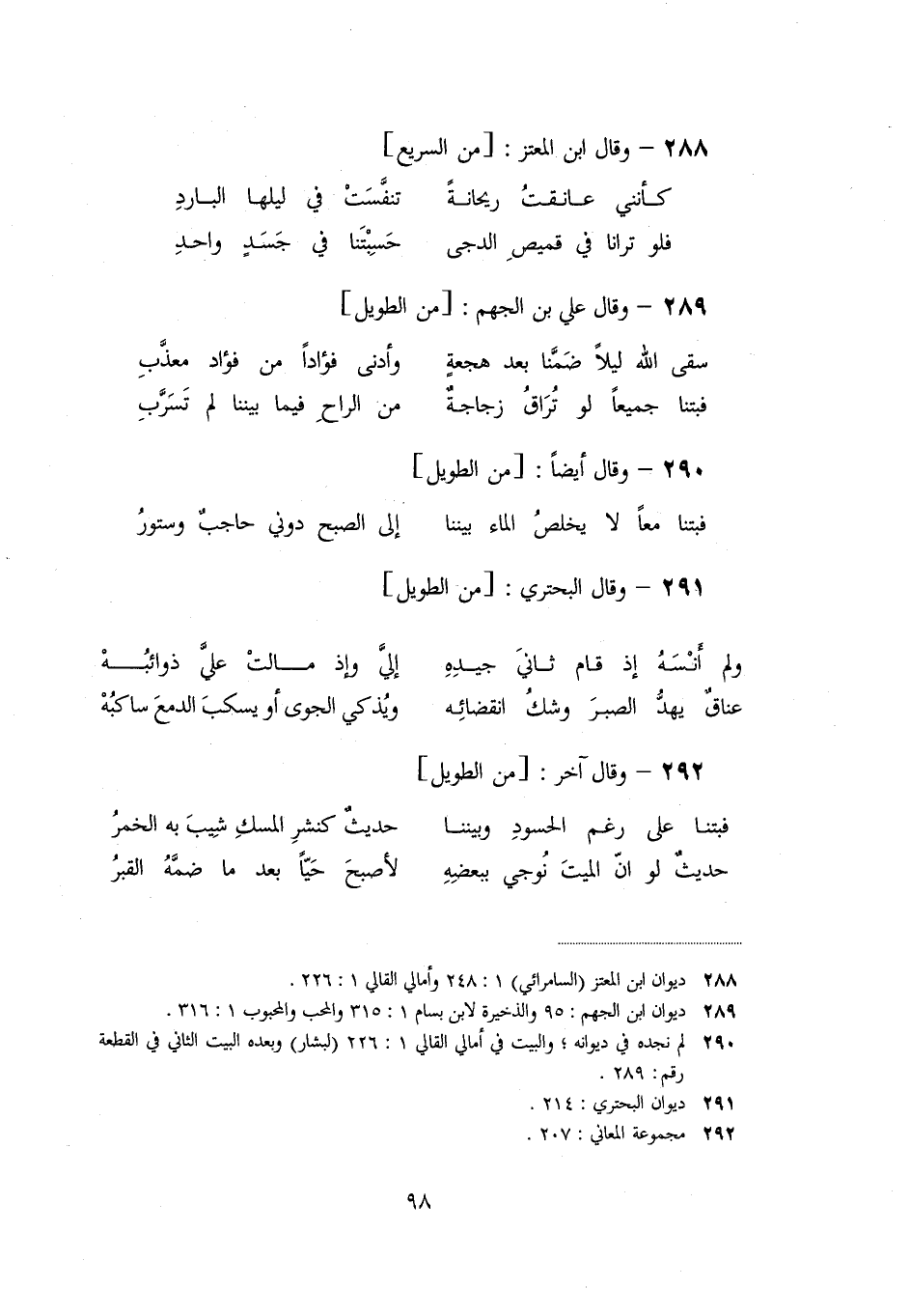 [288] ديوان ابن المعتز (السامرائي) 1: 248 وأمالي القالي 1: 226.