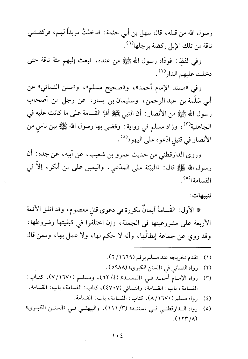 (٤) رواه مسلم (١٦٧٠/ ٨)، كتاب: القسامة، باب: القسامة.