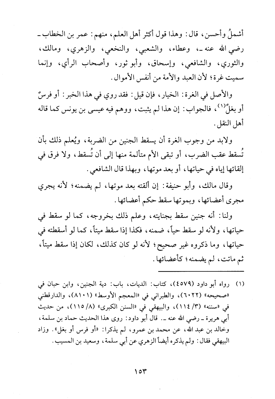 (١) رواه أبو داود (٤٥٧٩)، كتاب: الديات، باب: دية الجنين، وابن حبان في "صحيحه" (٦٠٢٢)، والطبراني في "المعجم الأوسط" (٨١٠١)، والدارقطني في "سننه" (٣/ ١١٤)، والبيهقي في "السنن الكبرى" (٨/ ١١٥)، من حديث أبي هريرة - رضي الله عنه -. قال أبو داود: روى هذا الحديث حماد بن سلمة، وخالد بن عبد الله، عن محمد بن عمرو, لم يذكرا: "أو فرس أو يغل". وزاد البيهقي فقال: ولم يذكره أيضًا الزهري عن أبي سلمة، وسعيد بن المسيب.