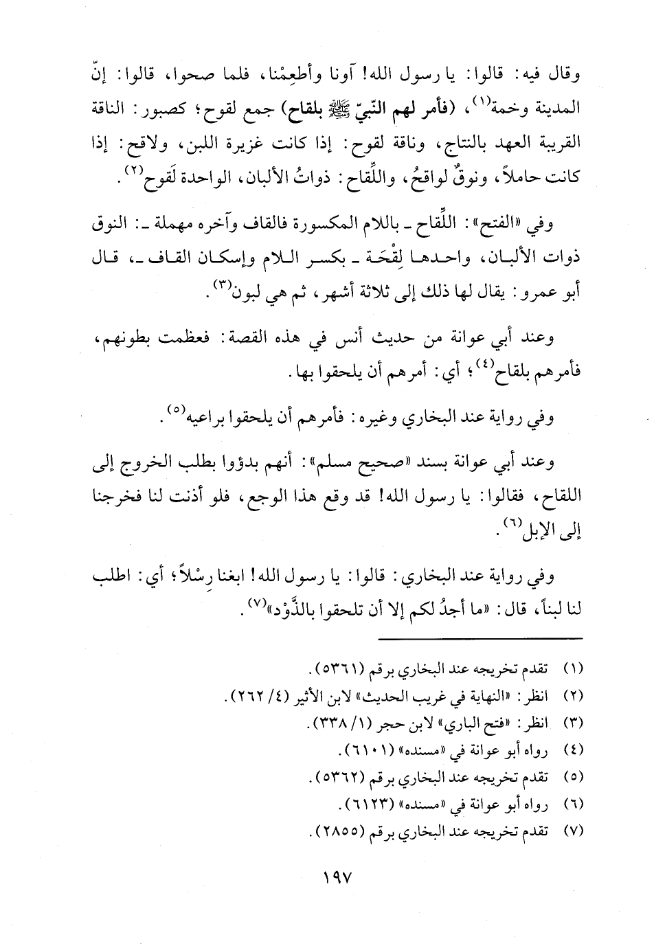 وفي رواية عند البخاري: قالوا: يا رسول الله! ابغنا رِسْلًا؛ أي: اطلب لنا لبنًا، قال: "ما أجدُ لكم إلا أن تلحقوا بالذَّوْد" (٧).