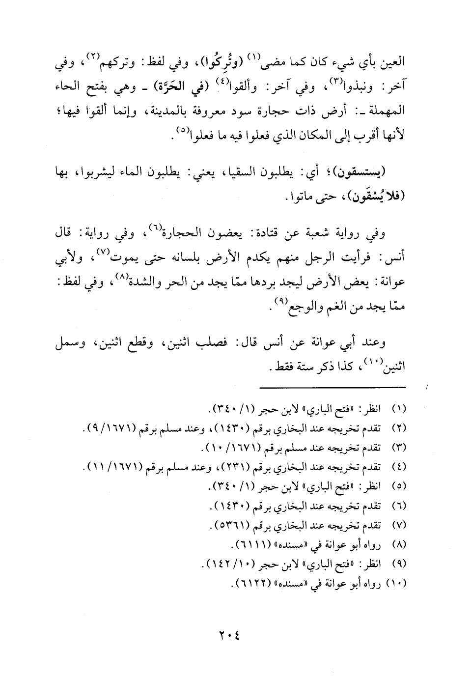 وفي رواية شعبة عن قتادة: يعضون الحجارة (٦)، وفي رواية: قال أنس: فرأيت الرجل منهم يكدم الأرض بلسانه حتى يموت (٧)، ولأبي عوانة: يعض الأرض ليجد بردها ممّا يجد من الحر والشدة (٨)، وفي لفظ: ممّا يجد من الغم والوجع (٩).