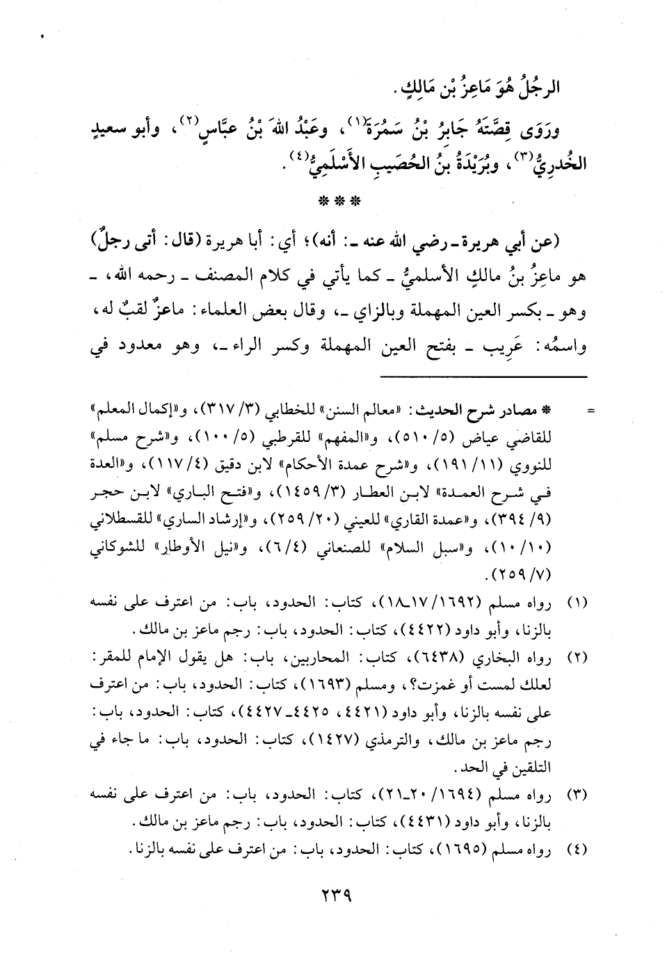 (٣) رواه مسلم (١٦٩٤/ ٢٠ - ٢١)، كتاب: الحدود، باب: من اعترف على نفسه بالزنا، وأبو داود (٤٤٣١)، كتاب: الحدود، باب: رجم ماعز بن مالك.