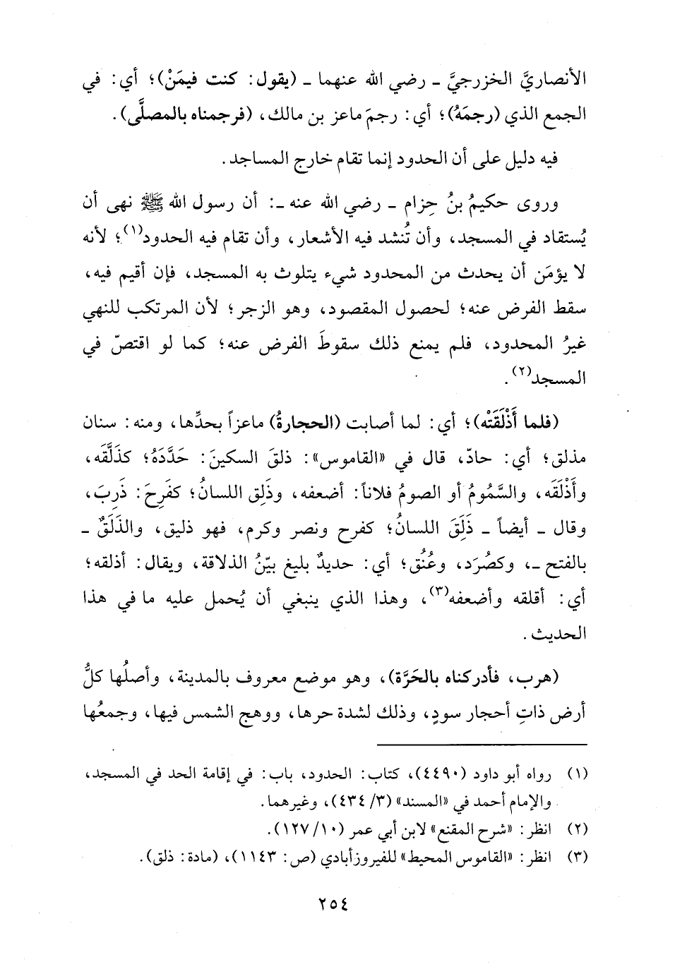 (هرب، فأدركناه بالحَرَّة)، وهو موضع معروف بالمدينة، وأصلُها كلُّ أرض ذاتِ أحجار سودٍ، وذلك لشدة حرها، ووهج الشمس فيها، وجمعُها