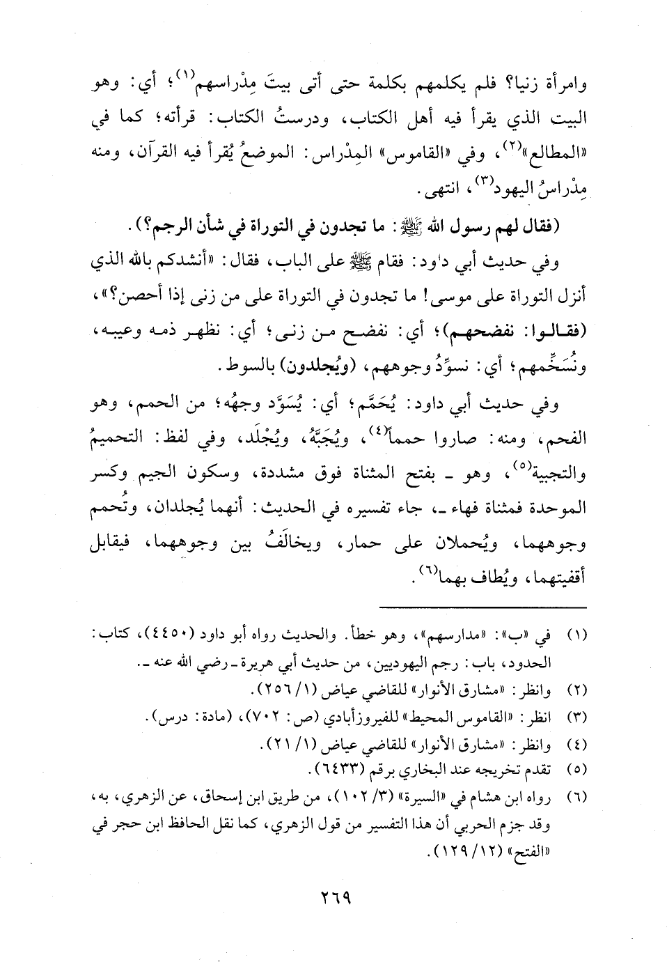 (١) في "ب": "مدارسهم"، وهو خطأ. والحديث رواه أبو داود (٤٤٥٠)، كتاب: الحدود، باب: رجم اليهوديين، من حديث أبي هريرة - رضي الله عنه -.
