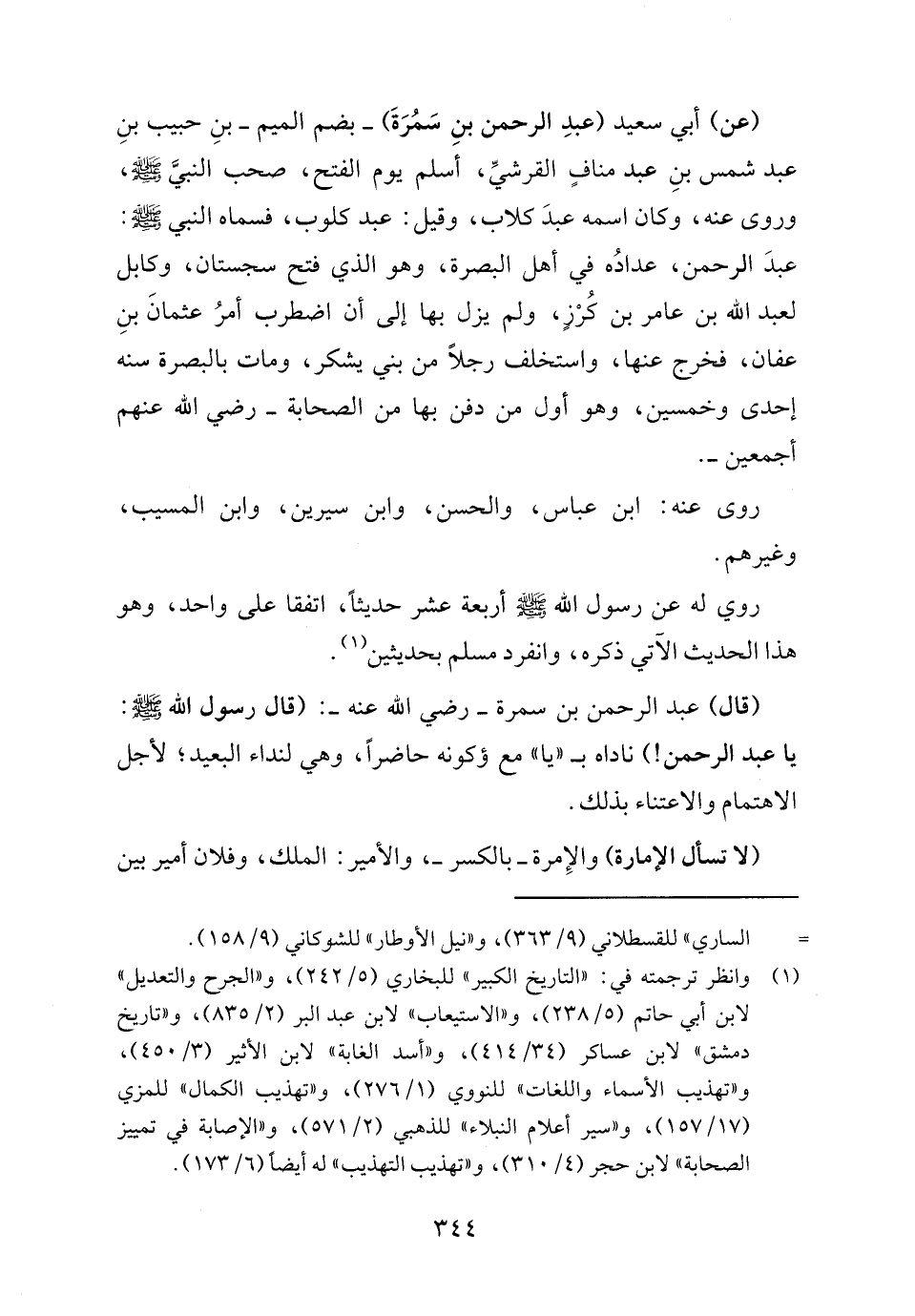 (قال) عبد الرحمن بن سمرة - رضي الله عنه -: (قال رسول الله - صلى الله عليه وسلم -: يا عبد الرحمن!) ناداه بـ "يا" مع كونه حاضرًا، وهي لنداء البعيد؛ لأجل الاهتمام والاعتناء بذلك.