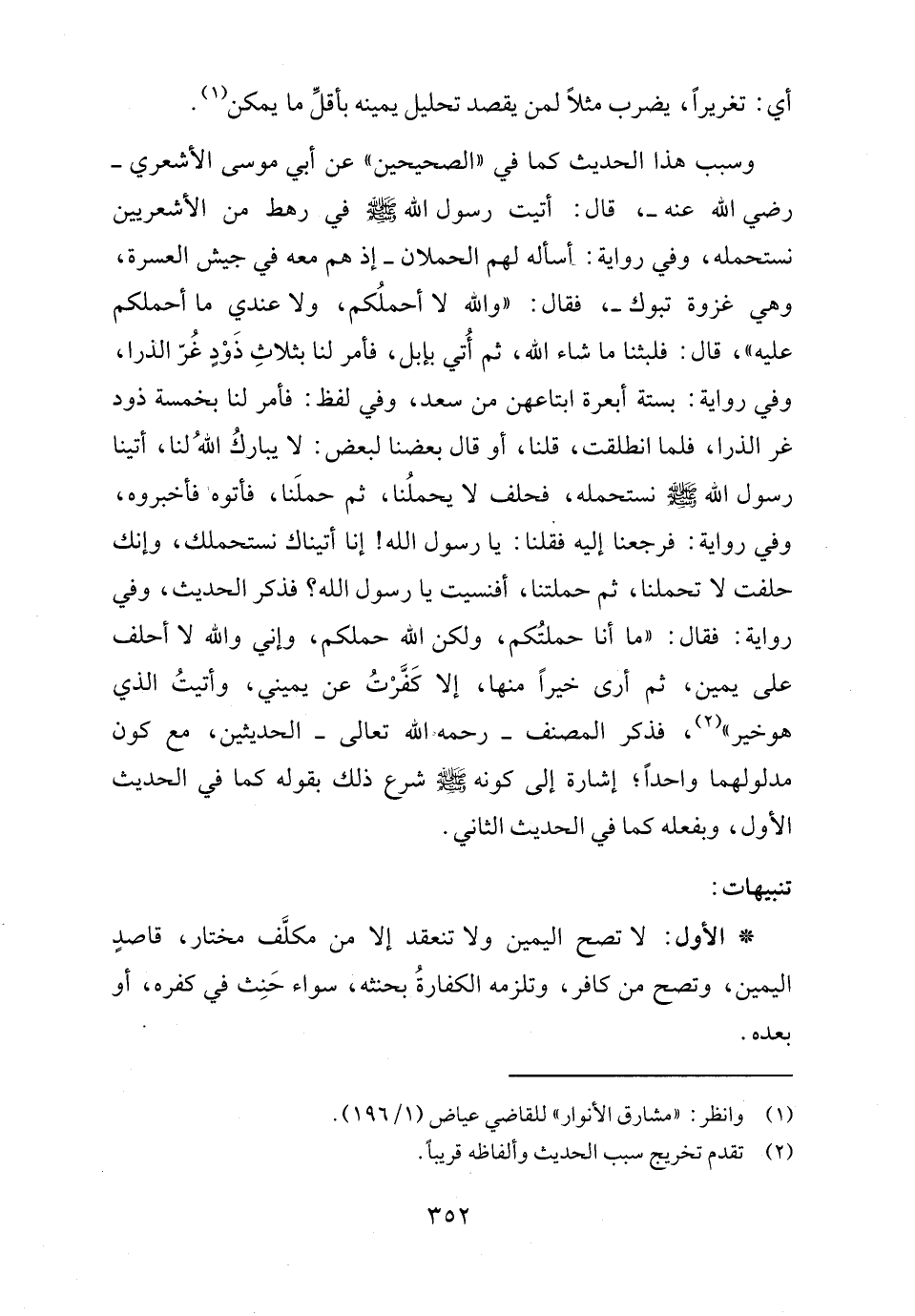 وسبب هذا الحديث كما في "الصحيحين" عن أبي موسى الأشعري - رضي الله عنه -، قال: أتيت رسول الله - صلى الله عليه وسلم - في رهط من الأشعريين نستحمله، وفي رواية: أسأله لهم الحملان -إذ هم معه في جيش العسرة، وهي غزوة تبوك-، فقال: "والله لا أحملُكم، ولا عندي ما أحملكم عليه"، قال: فلبثنا ما شاء الله، ثم أُتي بإبل، فأمر لنا بثلاثِ ذَوْدٍ غُرّ الذرا، وفي رواية: بستة أبعرة ابتاعهن من سعد، وفي لفظ: فأمر لنا بخمسة ذود غر الذرا، فلما انطلقت، قلنا، أو قال بعضنا لبعض: لا يباركُ اللهُ لنا، أتينا رسول الله - صلى الله عليه وسلم - نستحمله، فحلف لا يحملُنا، ثم حملَنا، فأتوها فأخبروه، وفي رواية: فرجعنا إليه فقلنا: يا رسول الله! إنا أتيناك نستحملك، وإنك حلفت لا تحملنا، ثم حملتنا، أفنسيت يا رسول الله؟ فذكر الحديث، وفي رواية: فقال: "ما أنا حملتُكم، ولكن الله حملكم، وإني والله لا أحلف على يمين، ثم أرى خيرًا منها، إلا كَفَّرْتُ عن يميني، وأتيتُ الذي هو خير" (٢)، فذكر المصنف -رحمه الله تعالى- الحديثين، مع كون مدلولهما واحدًا؛ إشارة إلى كونه - صلى الله عليه وسلم - شرع ذلك بقوله كما في الحديث الأول، وبفعله كما في الحديث الثاني.