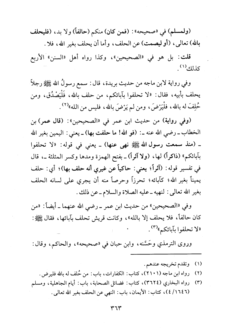(٣) رواه البخاري (٣٦٢٤)، كتاب: فضائل الصحابة، باب: أيام الجاهلية، ومسلم (١٦٤٦/ ٤)، كتاب: الأيمان، باب: النهي عن الحلف بغير الله تعالى.