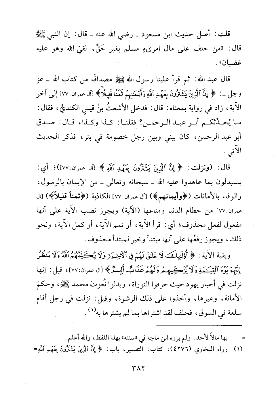 (١) رواه البخاري (٤٢٧٦)، كتاب: التفسير، باب: {إِنَّ الَّذِينَ يَشْتَرُونَ بِعَهْدِ اللَّهِ =