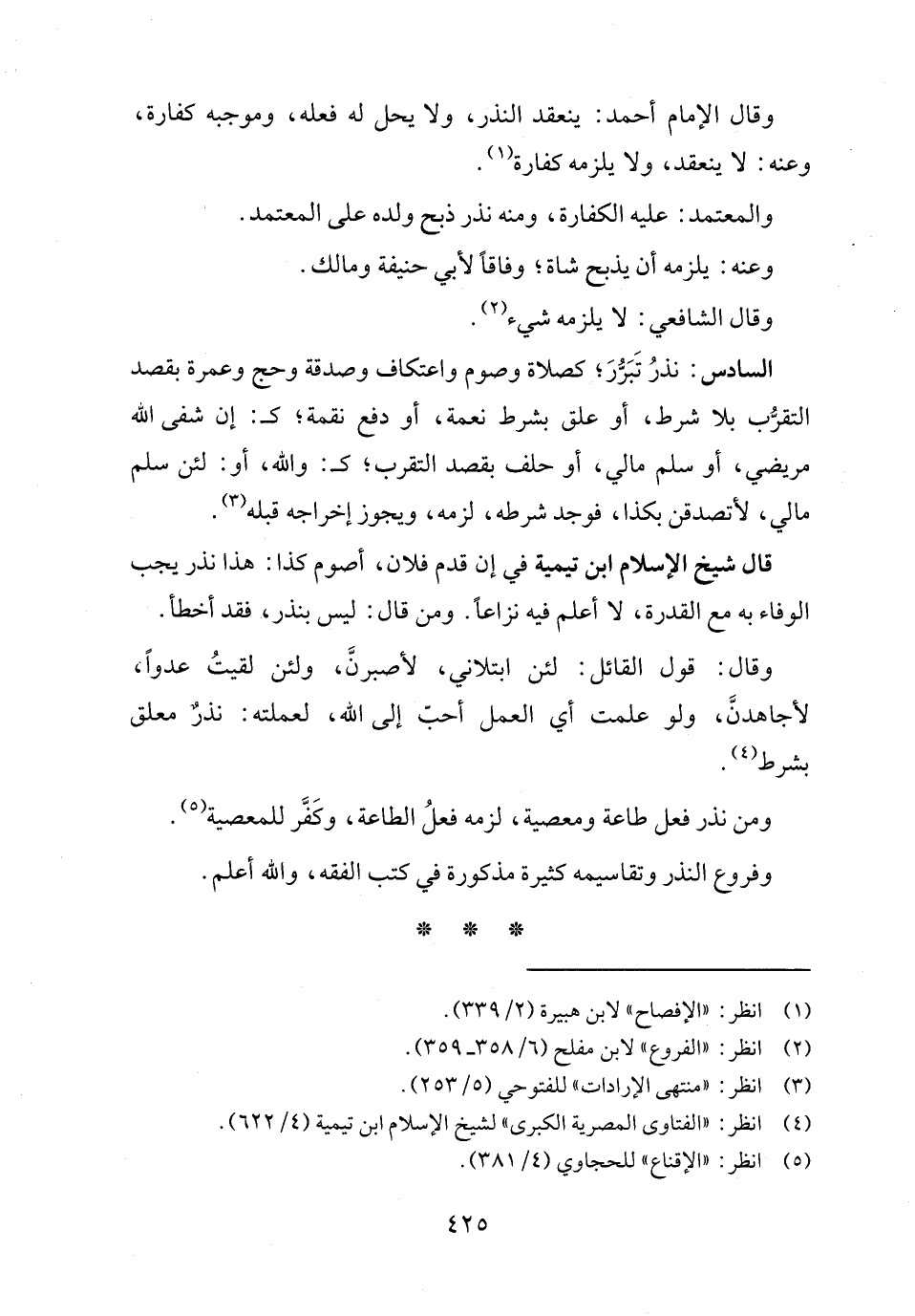 وفروع النذر وتقاسيمه كثيرة مذكورة في كتب الفقه، والله أعلم.