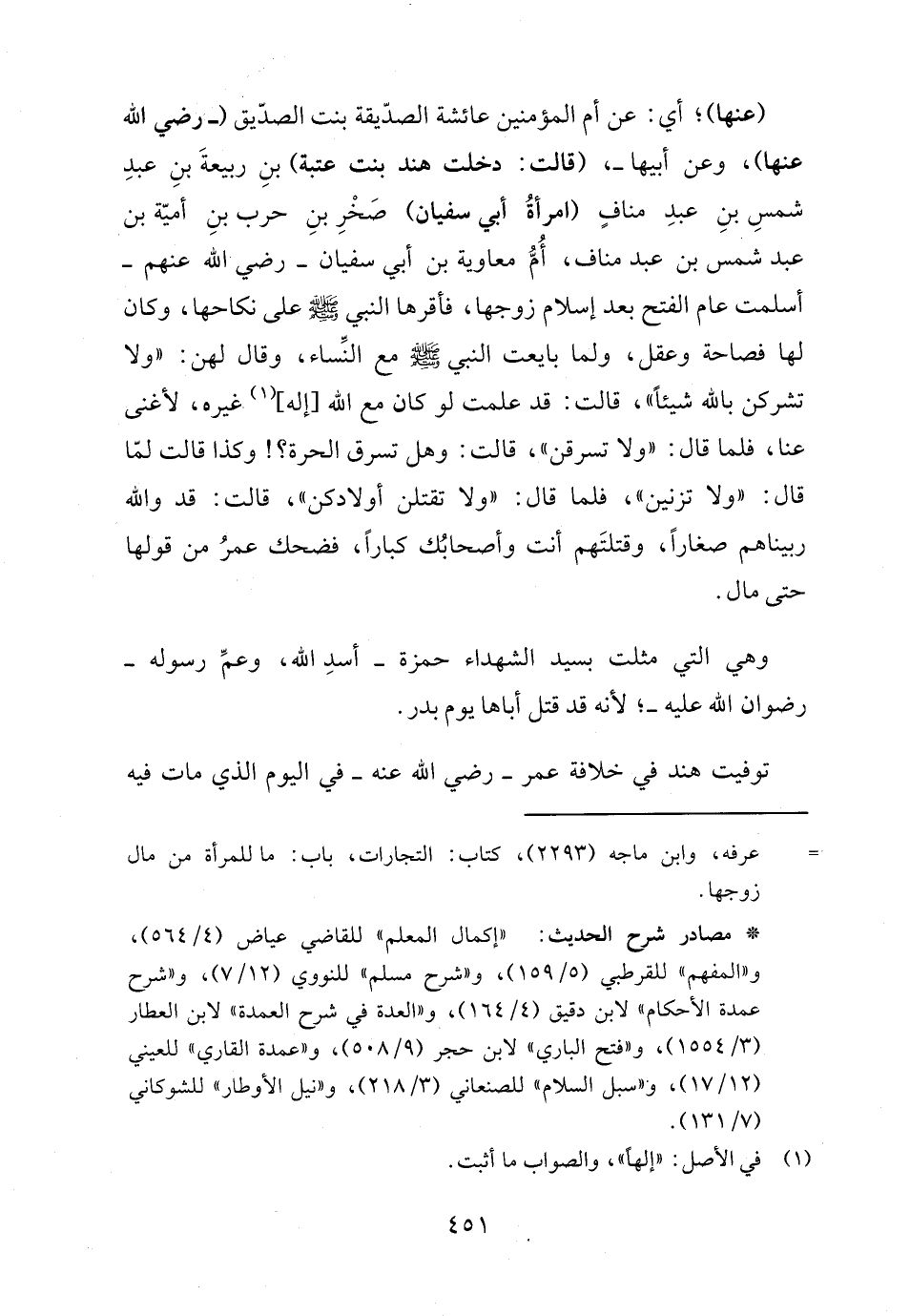 "إكمال المعلم" للقاضي عياض (٤/ ٥٦٤)، و"المفهم" للقرطبي (٥/ ١٥٩)، و"شرح مسلم" للنووي (١٢/ ٧)، و"شرح عمدة الأحكام" لابن دقيق (٤/ ١٦٤)، و"العدة في شرح العمدة" لابن العطار (٣/ ١٥٥٤)، و"فتح الباري" لابن حجر (٩/ ٥٠٨)، و"عمدة القاري" للعيني (١٢/ ١٧)، و"سبل السلام" للصنعاني (٣/ ٢١٨)، و"نيل الأوطار" للشوكاني (٧/ ١٣١).