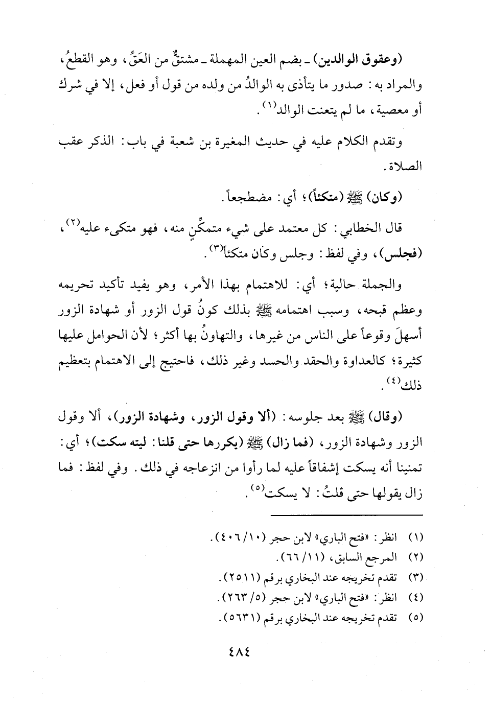 (وقال) - صلى الله عليه وسلم - بعد جلوسه: (ألا وقول الزور، وشهادة الزور)، ألا وقول الزور وشهادة الزور، (فما زال) - صلى الله عليه وسلم - (يكررها حتى قلنا: ليته سكت)؛ أي: تمنينا أنه يسكت إشفاقًا عليه لما رأوا من انزعاجه في ذلك. وفي لفظ: فما زال يقولها حتى قلتُ: لا يسكت (٥).