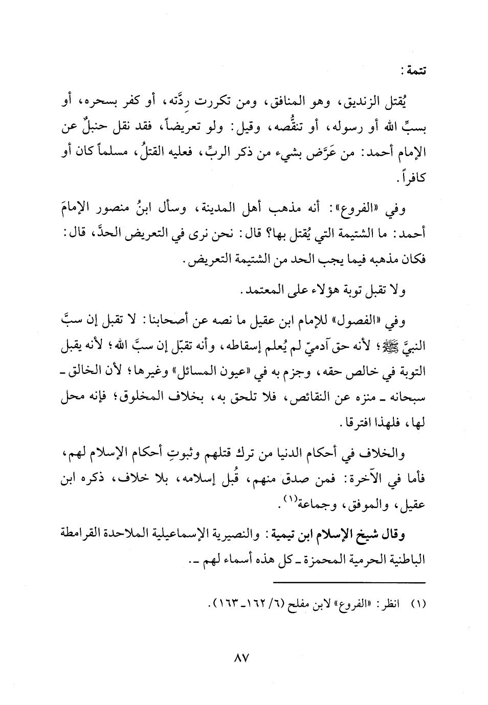 (١) انظر: "الفروع" لابن مفلح (٦/ ١٦٢ - ١٦٣).