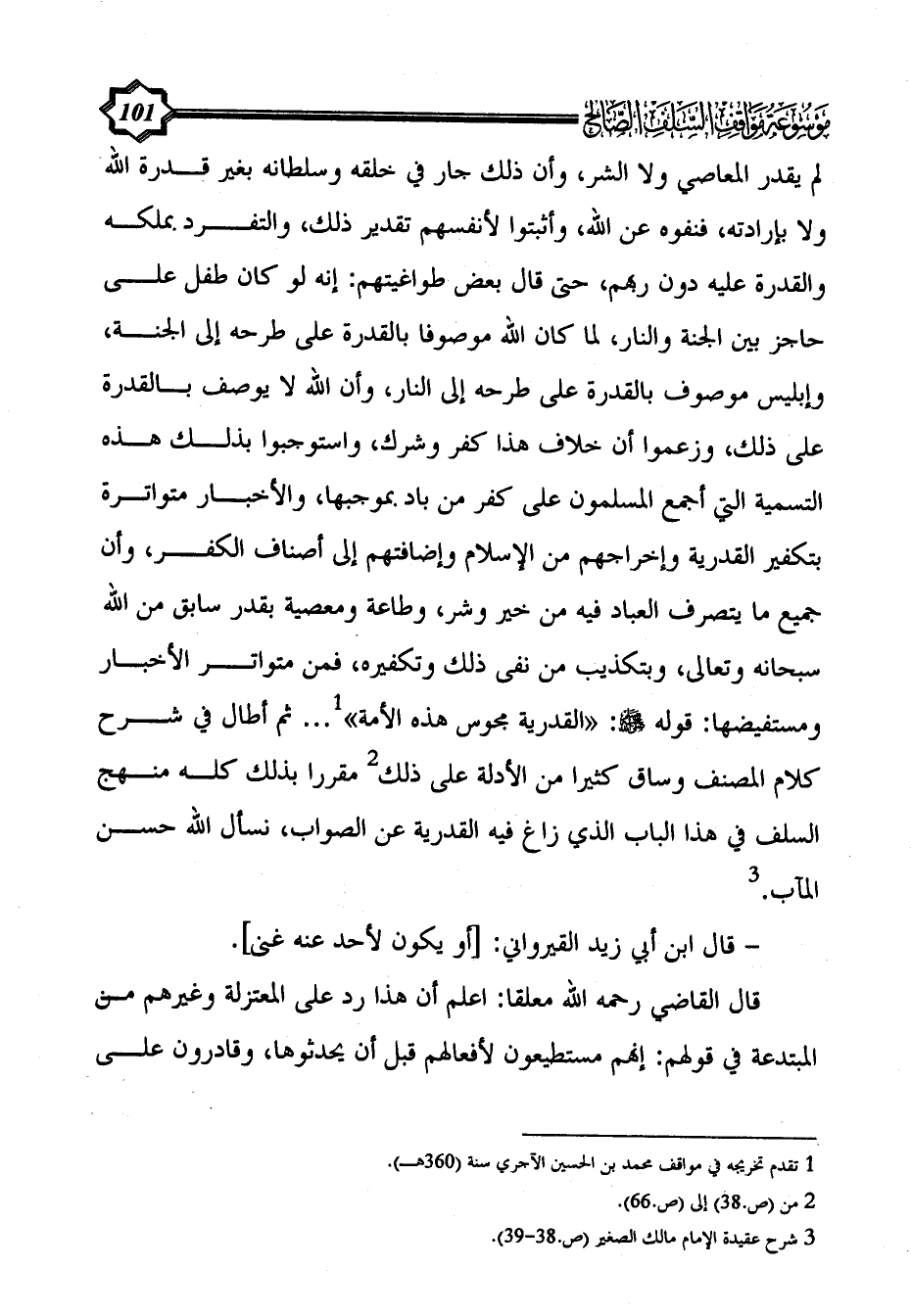 (¬3) شرح عقيدة الإمام مالك الصغير (ص.38 - 39).