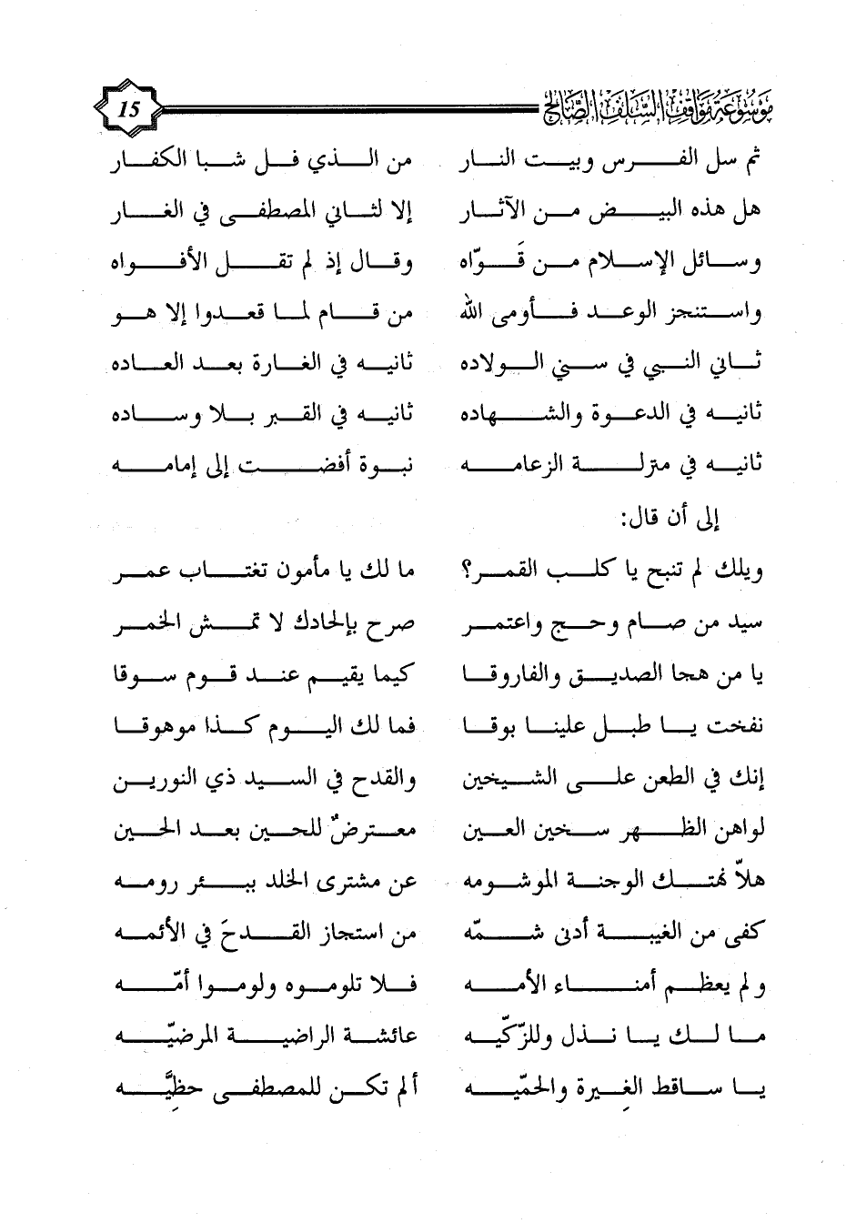 ثم سل الفرس وبيت النار ... من الذي فل شبا الكفار