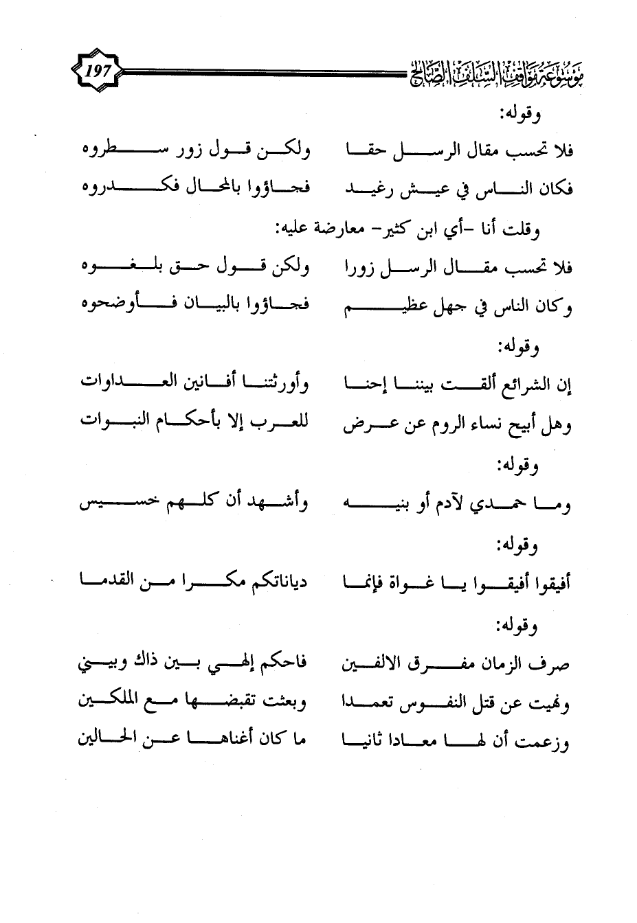 فلا تحسب مقال الرسل حقا ... ولكن قول زور سطروه