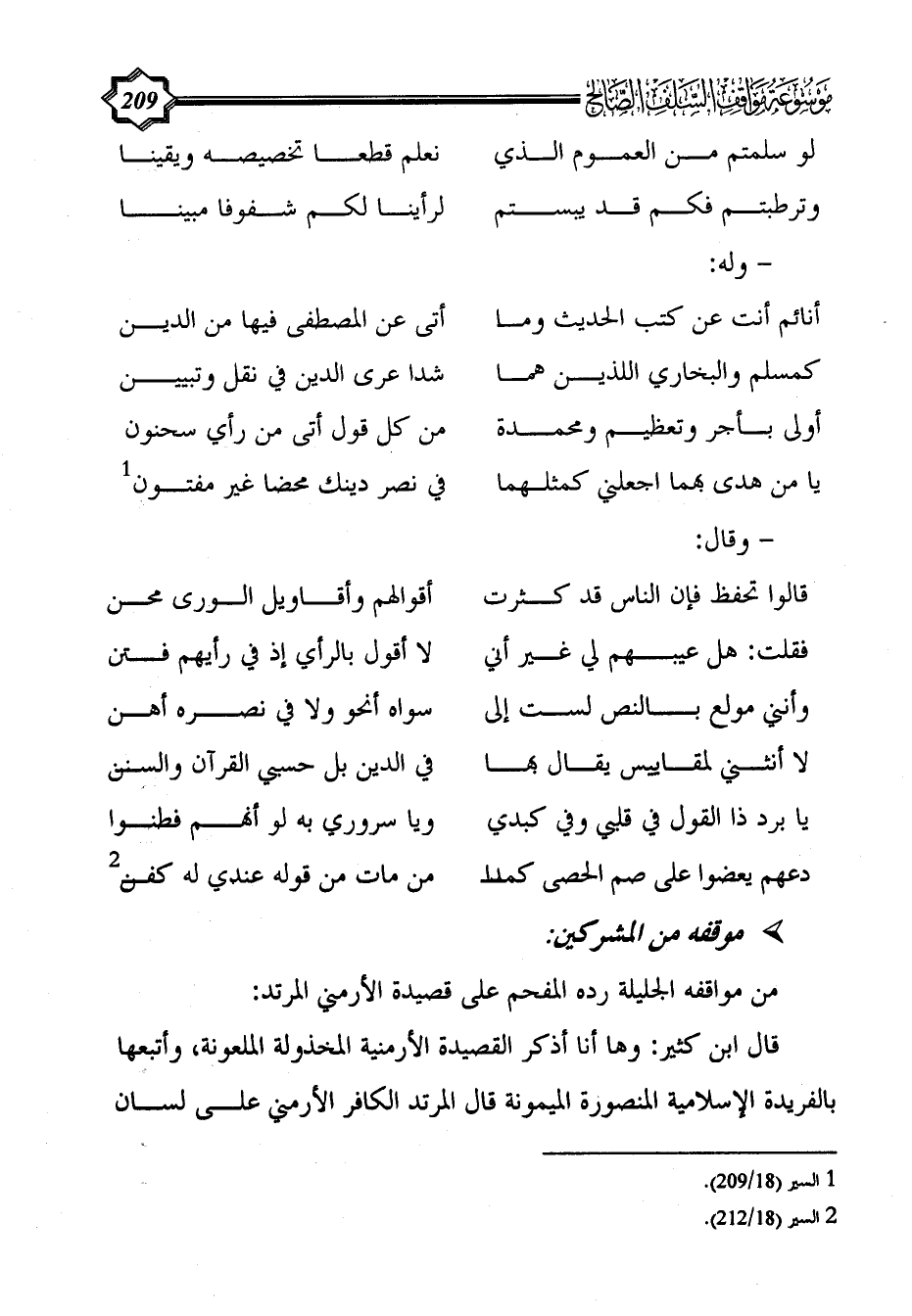 قال ابن كثير: وها أنا أذكر القصيدة الأرمنية المخذولة الملعونة، وأتبعها بالفريدة الإسلامية المنصورة الميمونة قال المرتد الكافر الأرمني على لسان