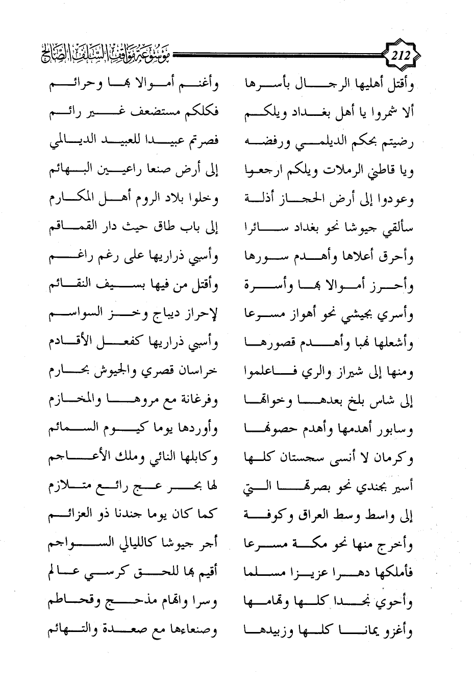 سألقي جيوشا نحو بغداد سائرا ... إلى باب طاق حيث دار القماقم