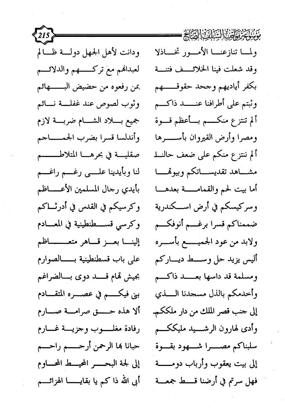 أليس يزيدٌ حل وسط دياركم ... على باب قسطنطينية بالصوارم