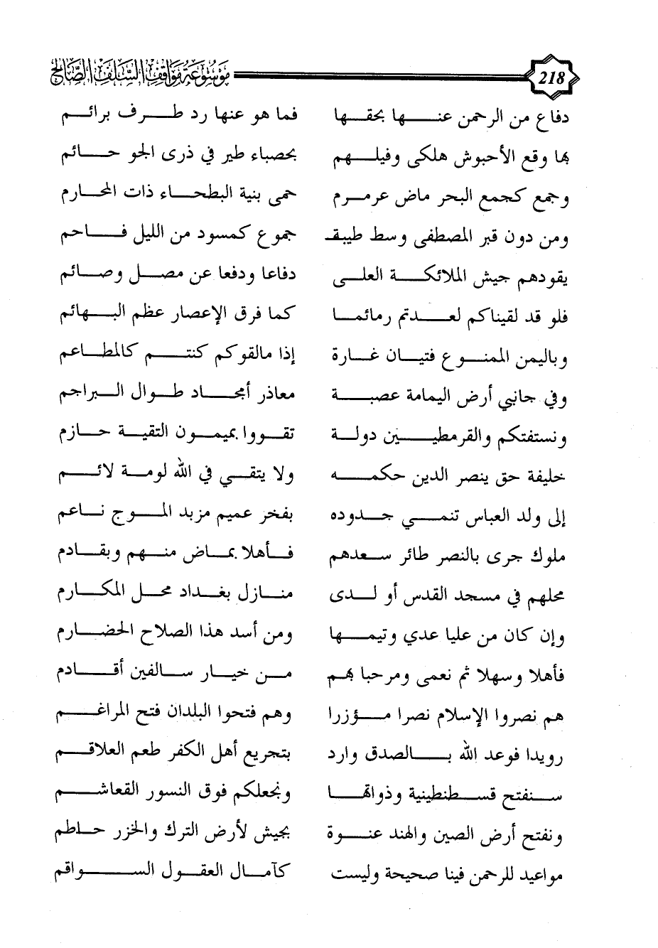 خليفة حق ينصر الدين حكمه ... ولا يتقي في الله لومة لائم