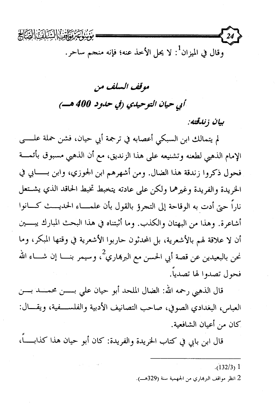 موقف السلف من أبي حيان التوحيدي (في حدود 400 هـ)